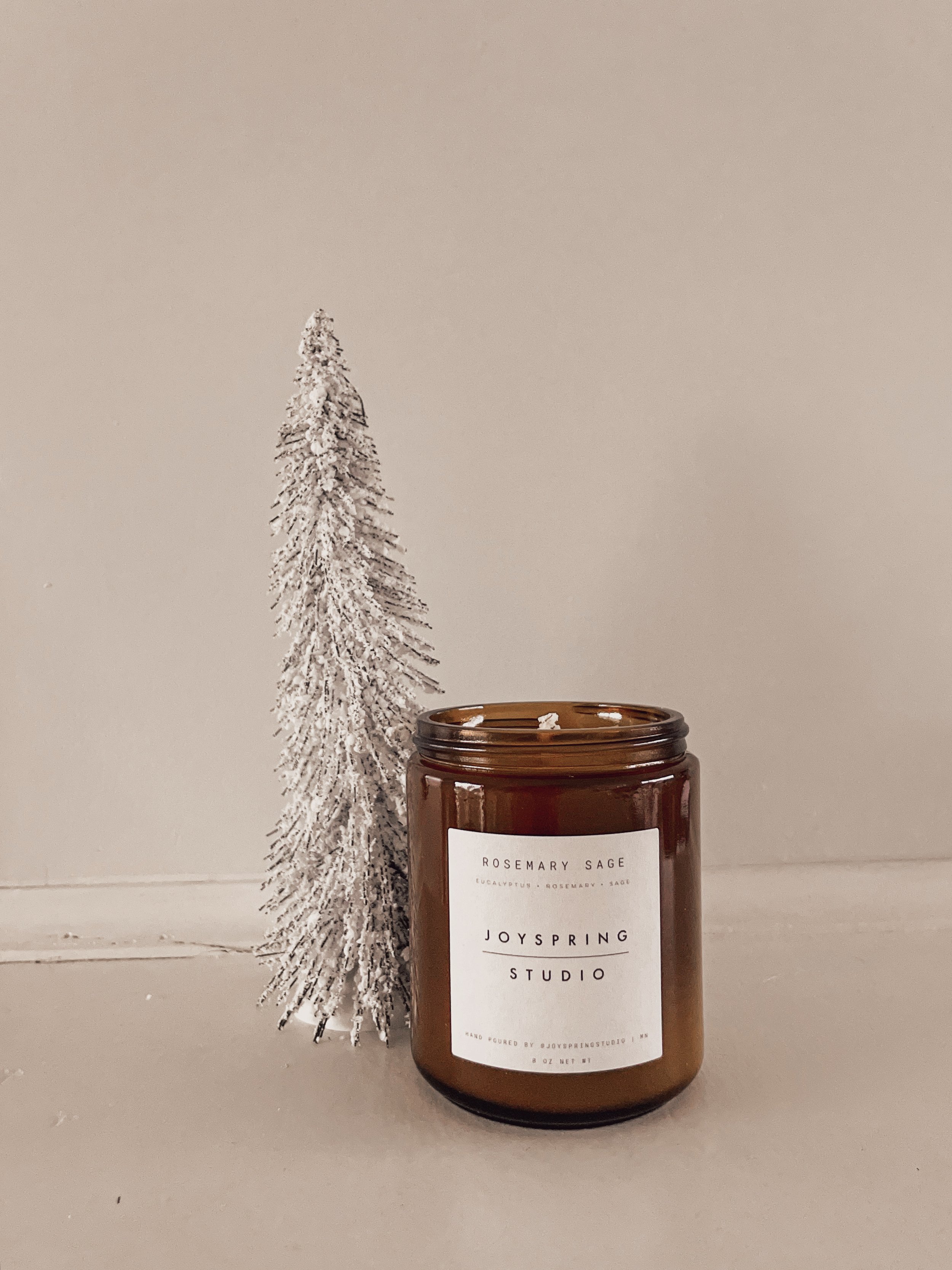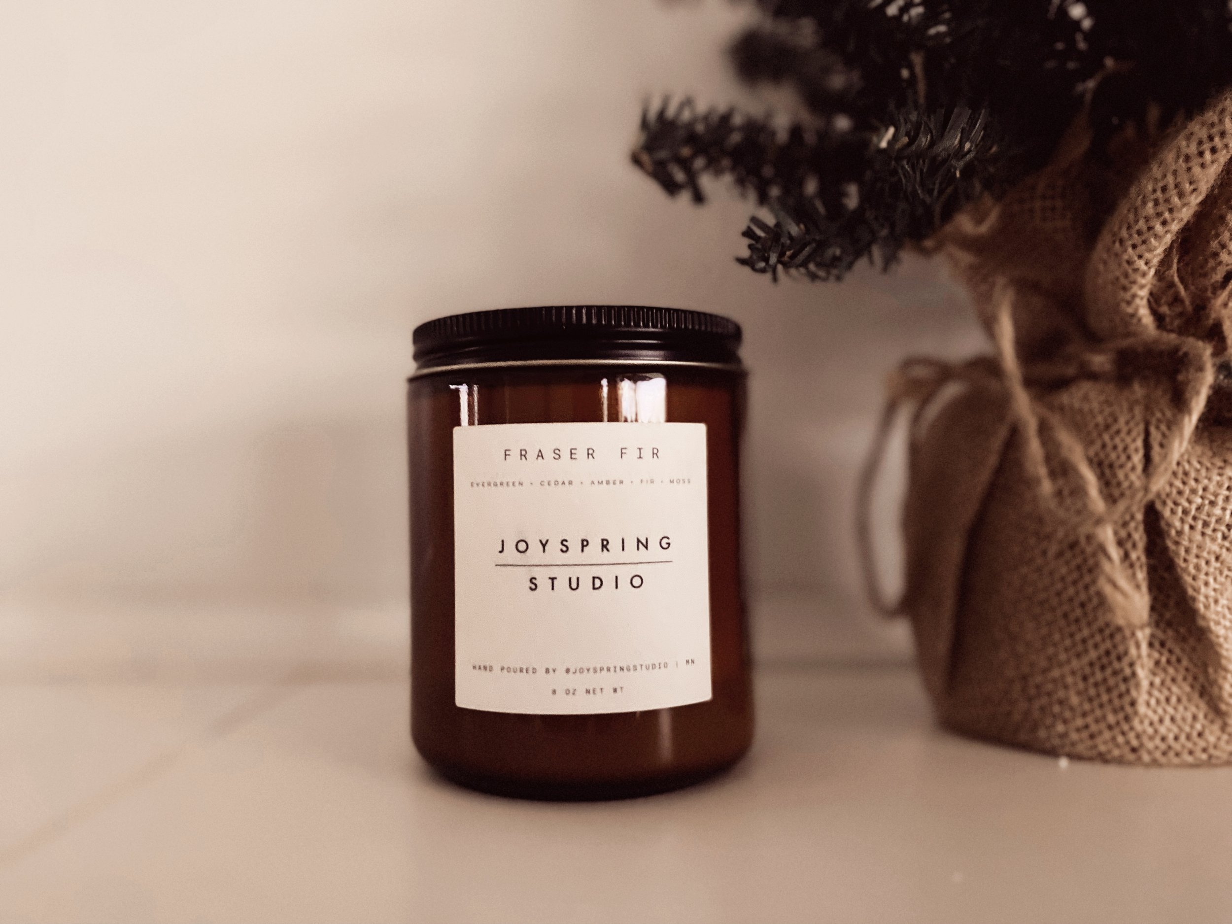 - 1 seasonal hand-poured soy wax candle by Joyspring Studio